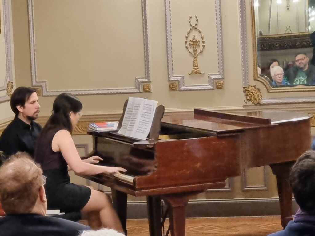 - Bárbara Warzyca tocando el piano en un concierto en la sede de la UPRA.