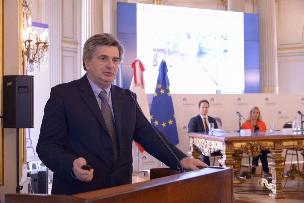 - El Vicepresidente de la UPRA Andrés Chowanczak disertando en el Salón Dorado de la Legislatura de la Ciudad de Buenos Aires.