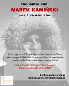 La Embajada de la República de Polonia en Buenos Aires tiene el agrado de invitarlos a un encuentro con Marek Kamiński, destacado explorador polaco y figura reconocida internacionalmente.