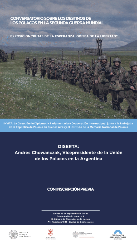 Polska 16/09/2025 Conversatorio sobre los destinos de los polacos en la II Guerra Mundial La Embajada de RP en Buenos Aires, junto a la Dirección de Diplomacia Parlamentaria y Cooperación Internacional, tienen el agrado [...]Saber más